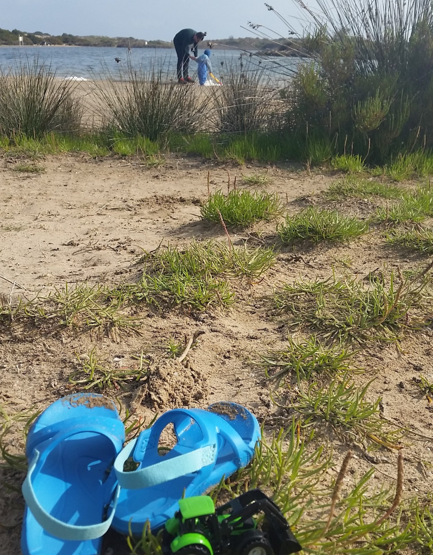 Der Morgen war heute etwas diesig, aber wir hatten den Plan am Strand zu frühstücken. Also gab es ein Quetschi für Max und ne schnelle Runde im Bad bevor wir mit Lucy ein paar Kilometer weiter zum Strand gefahren sind. Dort war es eher frisch, denn die Sonne wollte immer noch nicht wirklich „Hallo“ sagen. Gepicknickt wurde trotzdem.