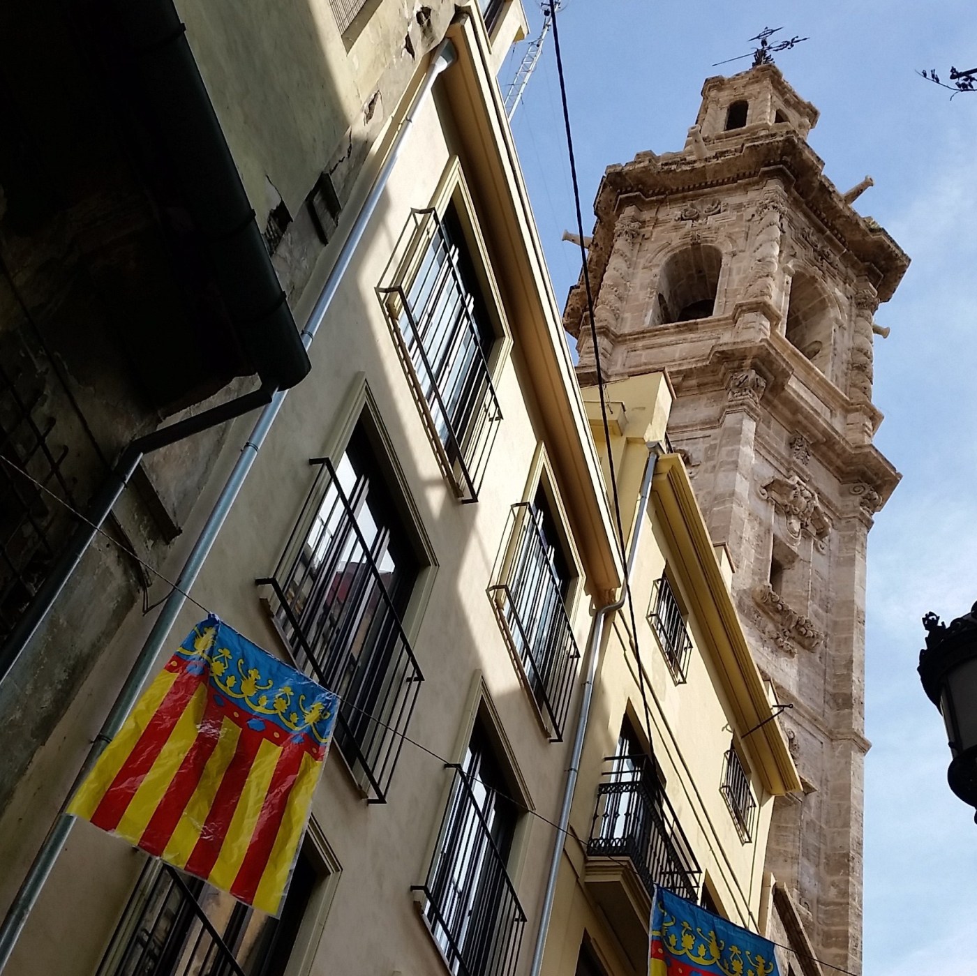 Gegen halb 12 waren wir dann bereit für unsere Sightseeingtour. Mit uns standen eine Schulklasse und ein paar andere deutsche Touristen an. Der Bus war etwas verspätet…typisch Spanisch, dachten wir und benahmen uns damit auch gleich „typisch deutsch“. Fünf Minuten Verspätung und schon wurden alle nervös. Sogar im Urlaub. Diese Ungeduld sorgte peu a peu dafür, dass wir irgendwie am Anfang der Schlange standen, aber trotzdem als Letzte einstiegen, weil es sich mit Kind im Bauch und auf dem Arm schlecht zurückdrängeln ließ. Am Ende waren nur noch im unteren Bereich zwei rückwärtsfahrende Plätze frei. Etwas genervt, wollten wir sowieso ein paar Stationen weiter erstmal aussteigen, aber Max schlief einfach auf Domis Schoß ein und ließ sich für 90 min nicht mehr aufwecken – egal in welche Position man ihn brachte. Also sind wir einfach die Strecke durchgefahren und haben uns Valencia vom Busfenster aus angesehen. Danach gab es für uns, auf einem ruhigen Platz hinter der Kathedrale, Tappas in einem kleinen Restaurant und ein wenig „mit dem Bagger und den Tauben spielen“ für Max. Wir sind dann noch ein wenig durch die Gassen Richtung Bushaltestelle geschlendert, wo Max einen Spielplatz auf dem Plaza Porta de la Mar entdeckt hat und sich begeistert auf der Rutsche ausgetobte. Da wir noch packen und am nächsten Morgen vor fünf weiterfahren wollten, ging es um 16 Uhr zurück Richtung El Saler.